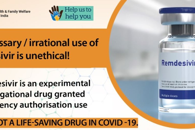 రెమ్డెసివిర్ అత్యవసర వినియోగం కింద వాడేందుకు అనుమతించిన ప్రయోగాత్మక ఔషధం మాత్రమేనని తెలిపింది. ఆసుపత్రిలో చేరిన వారికి వైద్యుల పర్యవేక్షణలో మాత్రమే దీన్ని ఇవ్వాలని పేర్కొంది. మోతాదు లక్షణాలుండి ఆక్సిజన్ అవసరమైన కరోనా బాధితులకు మాత్రమే దీన్ని అందజేయాలని స్పష్టం చేసింది. ఇంట్లో చికిత్స పొందుతున్నవారు ఎట్టిపరిస్థితుల్లో దీన్ని తీసుకోవద్దని తెలిపింది.
