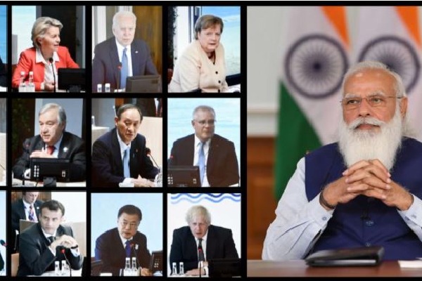 జీ-7 కూటమి శిఖరాగ్ర సదస్సులో భాగంగా రెండో రోజు జరిగిన రెండు కీలక సమావేశాల్లో ప్రధాని నరేంద్ర మోదీ ప్రసంగించారు. ‘బిల్డింగ్ బ్యాక్ టుగెదర్-ఓపెన్ సొసైటీస్ అండ్ ఎకానమీస్’ ఇతివృత్తంతో జరిగిన సమావేశంలో మోదీ లీడ్ స్పీకర్ హోదాలో ప్రసంగించారు. ప్రజాస్వామ్యం, స్వేచ్ఛ భారత నాగరికతలోనే ఇమిడి ఉన్నాయని ఈ సందర్భంగా మోదీ గుర్తు చేశారు. ఓపెన్ సొసైటీలు నిత్యం అవాస్తవ సమాచారం, సైబర్ నేరాల వంటి సమస్యలు ఎదుర్కొంటున్నాయని మోదీ నొక్కి చెప్పారు. సైబర్స్పేస్ను ప్రజాస్వామ్య విలువల్ని మరింత ముందుకు తీసుకెళ్లడానికి ఉపయోగించాలని.. వాటిని పక్కదారి పట్టించేందుకు కాదని హితవు పలికారు.
