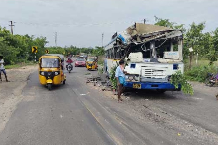 Telangana: వేగంగా దూసుకొచ్చి బస్సును ఢీకొట్టిన ఇసుక లారీ.. 20 మందికి తీవ్ర గాయాలు