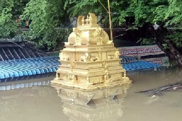 - ఆలయ గోపురాన్ని తాకిన వరద నీరు