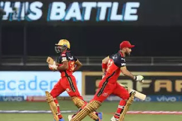 రాజస్థాన్ను తొలుత 149 పరుగులకు కట్టడి చేసిన కోహ్లీ సేన గ్లెన్ మ్యాక్స్వెల్, శ్రీకర్ భరత్ మెరుపులతో మరో 2.5 ఓవర్లు మిగిలి ఉండగానే మూడు వికెట్లు మాత్రమే కోల్పోయి ఘన విజయాన్ని అందుకుంది. మ్యాక్స్వెల్ 30 బంతుల్లో 6 ఫోర్లు, సిక్సర్తో అజేయంగా 50 పరుగులు చేయగా, 35 బంతులు ఎదుర్కొన్న భరత్ 3 ఫోర్లు, సిక్సర్తో 44 పరుగులు చేశాడు. కోహ్లీ 25, పడిక్కల్ 22 పరుగులు చేశారు.
