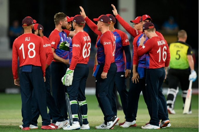 ఇంగ్లండ్ బౌలర్లలో క్రిస్ జోర్డాన్ 3, క్రిస్ వోక్స్ 2, టైమల్ మిల్స్ 2, అదిల్ రషీద్ 1, లివింగ్ స్టన్ 1 వికెట్ తీశారు. అనంతరం లక్ష్యఛేదనలో ఇంగ్లండ్ జట్టు 3 ఓవర్లలో వికెట్ నష్టపోకుండా 18 పరుగులు చేసింది.
