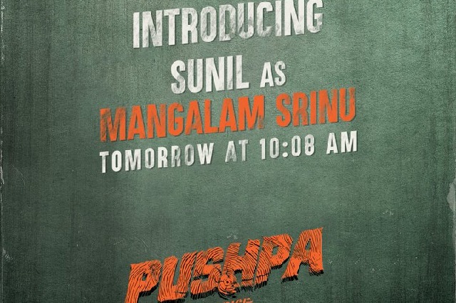 ఈ సినిమాలో సునీల్ 'మంగళం శ్రీను' అనే పాత్రను పోషించాడు. రేపు ఉదయం 10:08 నిమిషాలకు ఆయన ఫస్టులుక్ ను రిలీజ్ చేయనున్నారు. జగపతిబాబు .. ప్రకాశ్ రాజ్ కీలకమైన పాత్రలను పోషించిన ఈ సినిమాలో, అనసూయ ప్రత్యేకమైన పాత్రలో కనిపించనుంది. డిసెంబర్ 17వ తేదీన ఈ సినిమాను విడుదల చేయనున్నారు.