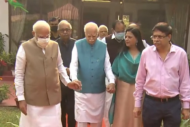 బీజేపీ కురువృద్ధుడు ఎల్కే అద్వానీ ఈరోజు తన పుట్టినరోజును జరుపుకుంటున్నారు. ఈరోజుతో ఆయన 94వ వసంతంలోకి అడుగుపెట్టారు. ఈ సందర్భంగా అద్వానీకి పుట్టినరోజు శుభాకాంక్షలు తెలిపేందుకు పలువురు ప్రముఖులు ఆయన నివాసానికి వచ్చారు. ఆయనకు శుభాకాంక్షలు తెలిపిన వారిలో ఉప రాష్ట్రపతి వెంకయ్యనాయుడు, ప్రధాని నరేంద్ర మోదీ, కేంద్ర హోంశాఖ మంత్రి అమిత్ షా, రక్షణ మంత్రి రాజ్ నాథ్ సింగ్, బీజేపీ జాతీయ అధ్యక్షుడు జేపీ నడ్డా తదితరులు ఉన్నారు. ఈ సందర్భంగా వీరంతా ఒకే చోట కూర్చోని మనసు విప్పి మాట్లాడుకున్నారు.
