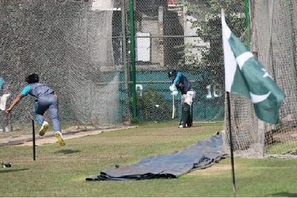 - ప్రాక్టీసు సందర్భంగా తమ దేశ జెండా ఎగురవేసిన పాక్ ఆటగాళ్లు