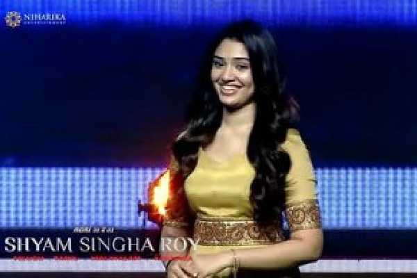 నాని హీరోగా దర్శకుడు రాహుల్ సాంకృత్యన్ 'శ్యామ్ సింగ రాయ్' సినిమా చేశాడు. వెంకట్ బోయనపల్లి ఈ సినిమాకి నిర్మాతగా వ్యవహరించారు. ఈ నెల 24వ తేదీన ఈ సినిమా ప్రేక్షకుల ముందుకు రానుంది. ఈ నేపథ్యంలో నిన్న రాత్రి ఈ సినిమా ప్రీ రిలీజ్ ఈవెంట్ జరిగింది. ఈ వేదికపై కృతి శెట్టి తెలుగులో మాట్లాడటం అందరినీ ఆకట్టుకుంది.