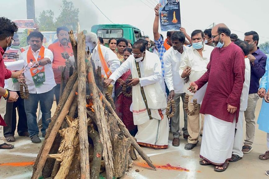 Somu Veerraju: భోగి మంటల ద్వారా నిరసన వ్యక్తం చేసిన సోము వీర్రాజు