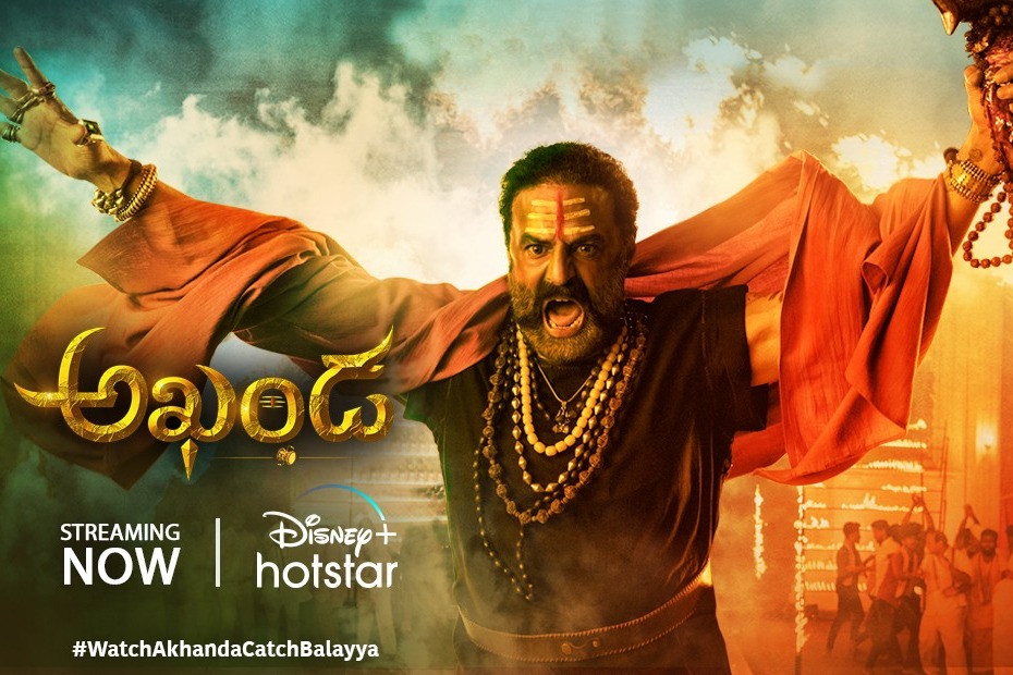 నందమూరి బాలకృష్ణ, బోయపాటి శ్రీను ల సెన్సేషనల్ కాంబినేషన్ లో బ్లాక్ బస్టర్ టాక్ తో దూసుకుపోయిన "అఖండ" సినిమా ప్రపంచవ్యాప్తంగా "డిస్నీ ప్లస్ హాట్ స్టార్" ప్రేక్షకుల్ని సమ్మోహితులను చేయబోతోంది. నందమూరి బాలకృష్ణ ద్విపాత్రాభినయం చేసిన ఈ సినిమాలో జగపతి బాబు, శ్రీకాంత్, ప్రజ్ఞ జైస్వాల్, పూర్ణ , సునీల్ శెట్టి ప్రధాన పాత్రల్లో కనిపిస్తారు.