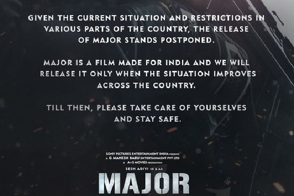అడివి శేష్ కథానాయకుడిగా 'మేజర్' సినిమా రూపొందింది. సోనీ పిక్చర్స్ వారితో కలిసి మహేశ్ బాబు ఈ సినిమాను నిర్మించాడు. శశికిరణ్ తిక్క దర్శకత్వం వహించిన ఈ సినిమా, మేజర్ సందీప్ ఉన్నికృష్ణన్ జీవితచరిత్రగా నిర్మితమైంది. శోభిత ధూళిపాళ .. సయీ మంజ్రేకర్ ముఖ్యమైన పాత్రలను పోషించారు.