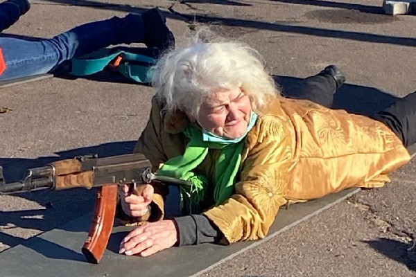 - 79 అసాల్ట్ రైఫిల్ను వాడే శిక్షణ తీసుకుంటోన్న బామ్మ