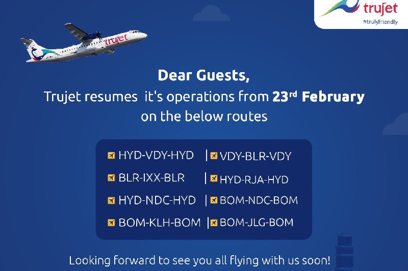 trujet: రేపటి నుంచి మళ్లీ ఎగరనున్న ట్రూజెట్ విమానాలు