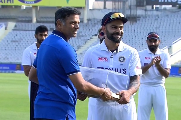 - 100 టెస్ట్ క్యాప్, మొమెంటో బహూకరించిన ద్రవిడ్