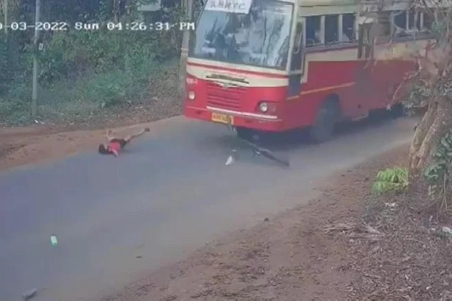 అయితే, ఆ వెనకే బస్సు వస్తోంది. సైకిల్ రోడ్డు మీద పడిపోగా.. చిన్నారి కొద్దిలో బస్సు చక్రాల కింద పడకుండా తప్పించుకోగలిగాడు. సైకిల్ పైకి బస్సు ఎక్కేసింది. రోడ్డు మీద ఎగిరిపడినా.. చిన్న గాయం లేకుండా బయటపడగలిగాడు. కేరళలోని కన్నూరు జిల్లా తాలిపారంబాకు సమీపంలోని చోరుక్కల వద్ద ఈ ఘటన జరిగింది.