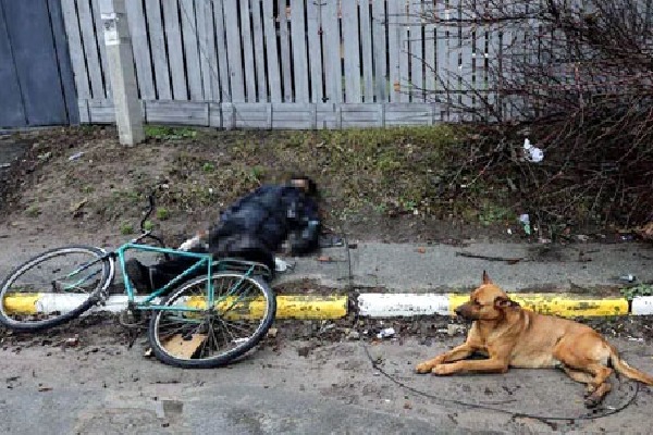 ‘నెక్స్టా’ మీడియా తాజాగా షేర్ చేసిన ఓ ఫొటో అయితే కన్నీళ్లు పెట్టిస్తోంది. రాజధాని కీవ్ ప్రాంతంలో సైకిలుపై వెళ్తున్న ఓ వ్యక్తి రష్యా దాడిలో మరణించి రోడ్డు పక్కన అచేతనంగా పడిపోయాడు. దీనిని గమనించిన అతడి పెంపుడు శునకం యజమాని మృతదేహం పక్కనే కదలకుండా కూర్చుంది. దానిని అక్కడి నుంచి పంపేందుకు చేస్తున్న ప్రయత్నాలు విఫలమవుతున్నాయి. అక్కడి నుంచి అది కదిలేందుకు మొరాయిస్తోంది.