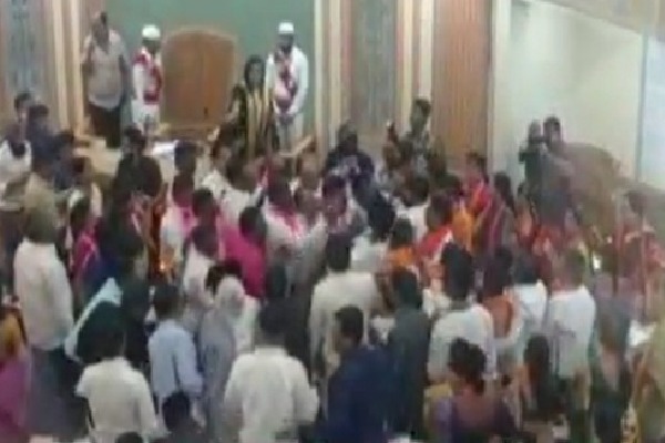 - పోడియం వద్ద రెండు పార్టీల నేతల హంగామా