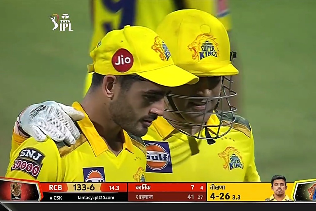 షాబాజ్ అహ్మద్ వికెట్ ను మహీష్ తీక్షణ పడగొట్టిన వెంటనే ధోనీ వేగంగా నడుచుకుంటూ ముకేశ్ చౌదరి దగ్గరకు వెళ్లాడు. భుజంపై చేయి వేసి అతడికి ముఖ్య సూచనలు చేశాడు. ఫీల్డింగ్ సమయంలో తీసుకోవాల్సిన జాగ్రత్తలను గుర్తు చేశాడు. ఇది చూసిన అభిమానులు కెప్టెన్ ధోనీ, లీడర్ అంటూ ప్రశంసించారు.