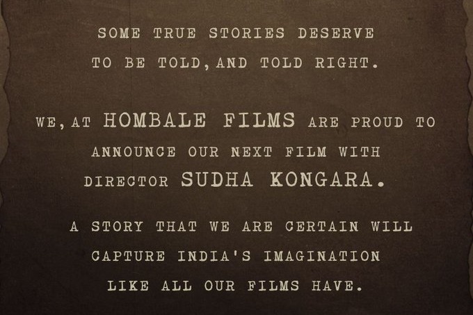 ఇక ఆ తరువాత సూర్య కథానాయకుడిగా తమిళంలో ఆమె చేసిన 'సురారైపోట్రు' .. తెలుగులో 'ఆకాశం నీ హద్దురా' పేరుతో ప్రేక్షకులను పలకరించింది. సుధా కొంగరతో పాటు సూర్యకి కూడా ఈ సినిమా ప్రశంసలను తెచ్చిపెట్టింది. ఈ సారి కూడా ఆమె వాస్తవ సంఘటనల ఆధారంగానే ఒక కథను సిద్ధం చేసుకున్నారు.