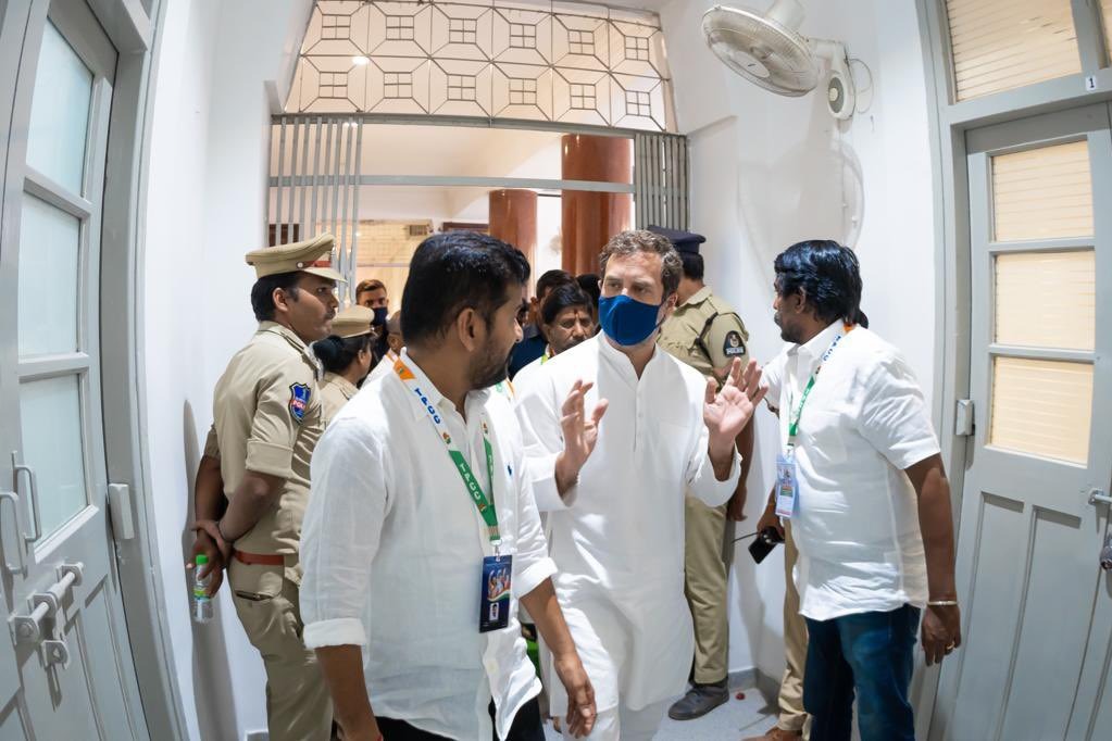 కాంగ్రెస్ పార్టీకి చెందిన తెలంగాణ శాఖ కార్యాలయంగా గాంధీ భవన్ కొనసాగుతోంది. ఉమ్మడి రాష్ట్రంలో ఉమ్మడి ఏపీ కాంగ్రెస్ శాఖకు ఇదే కార్యాలయంగా కొనసాగిన సంగతి తెలిసిందే. హైదరాబాద్లో ఓ ల్యాండ్ మార్క్గా నిలిచిన గాంధీ భవన్కు ఆ పార్టీ అగ్ర నేత రాహుల్ గాంధీ ఇప్పటిదాకా రానే లేదు. అయితే తాజాగా రెండు రోజుల తెలంగాణ పర్యటనకు వచ్చిన రాహుల్ గాంధీ తొలిసారి గాంధీ భవన్లో అడుగుపెట్టారు.