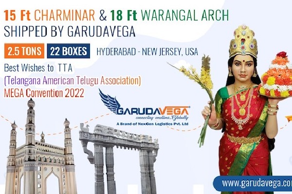 ప్రముఖ కొరియర్ సంస్థ గరుడవేగ వారు తెలంగాణ అమెరికన్ తెలుగు అసోషియేషన్ (TTA) నిర్వహిస్తున్న మెగా కన్వెన్షన్ కొరకై 6 అడుగుల తెలంగాణ తల్లి విగ్రహం, 15 అడుగుల చార్మినార్, 18 అడుగుల ఓరుగల్లు స్తూపాల నమూనాలను తమ కొరియర్ సంస్థ ద్వారా పంపుతున్నందుకు ఎంతో ఆనందాన్ని వ్యక్తపరిచారు.