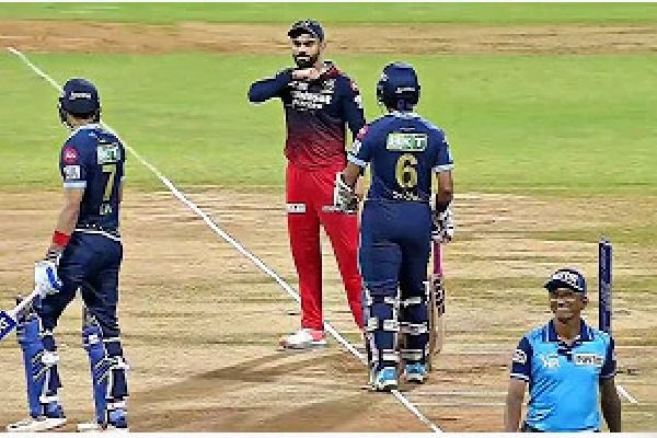 ఈ మ్యాచ్ లో గుజరాత్ మొదట బ్యాటింగ్ చేసింది. ఈ సందర్భంగా గుజరాత్ టైటాన్స్ ఆటగాడు శుభ్ మాన్ గిల్ పై కోహ్లీ స్లెడ్జింగ్ కు దిగాడు. గిల్ ను చూస్తూ "చంపేస్తా" అన్నట్టుగా సంజ్ఞ చేశాడు. అచ్చం... డబ్ల్యూడబ్ల్యూఈ ఫైట్ లో అండర్ టేకర్ చేసినట్టు చేశాడు. దాంతో గిల్ కూడా కోహ్లీ వైపు సీరియస్ గా చూస్తూ వెళ్లిపోయాడు.