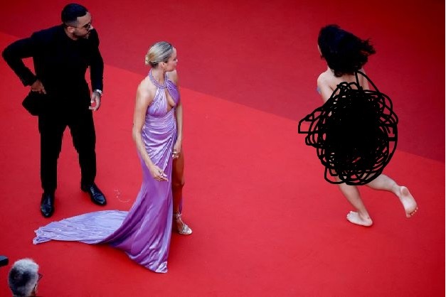 వెనువెంటనే స్పందించిన సెక్యూరిటీ సిబ్బంది ఆమెను బయటకు తీసుకెళ్లిపోయారు. ఒంటి మీద వస్త్రాలు కప్పారు. దీనిపై కేన్స్ అధికారిక బృందం ఇంకా ఎలాంటి స్పందనా తెలియజేయలేదు. కేన్స్ ఫిల్మ్ ఫెస్టివల్ లో ఉక్రెయిన్ కు సంఘీభావంగా ఆ దేశానికి చెందిన సినిమాలనూ ప్రదర్శిస్తున్నారు.