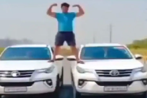 రెండు కార్లపై అటో కాలు, ఇటో కాలు వేసి నిల్చుని, ‘ఫూల్ ఔర్ కాంటే’ సినిమాలో అజయ్ దేవగణ్ చేసినట్టుగా చేశాడు. అనంతరం దానిని సోషల్ మీడియాలో పోస్టు చేయడంతో అది కాస్తా వైరల్ అయింది. దీంతో అప్రమత్తమైన పోలీసులు సదరు యువకుడిని అరెస్ట్ చేసి కటకటాల వెనక్కి పంపారు. అతడిపై న్యూసెన్స్ కేసు నమోదు చేసినట్టు పోలీసులు తెలిపారు. స్టంట్స్ కోసం రాజీవ్ వినియోగించిన రెండు ఎస్యూవీ కార్లు, రెండు బైక్లను స్వాధీనం చేసుకున్నారు.