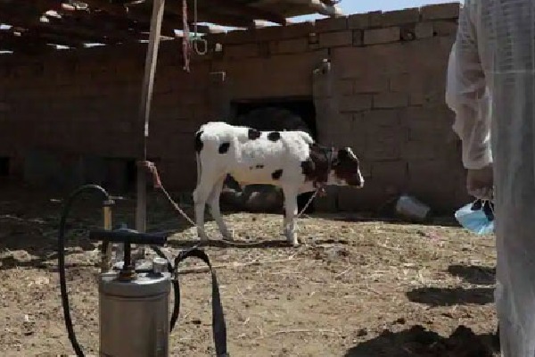 - పశువులపై క్రిమిసంహారకాలు పిచికారీ చేస్తున్న అధికారులు