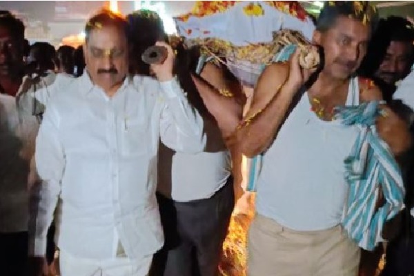 Thummala: మిత్రుడికి కన్నీటి వీడ్కోలు.. పాడె మోసిన తుమ్మల నాగేశ్వరరావు!