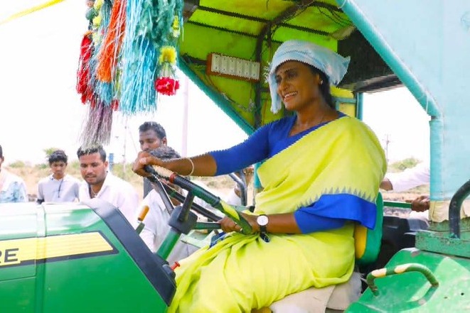 ఇటీవల ఏపీ ముఖ్యమంత్రి జగన్ ట్రాక్టర్ నడిపిన సంగతి తెలిసిందే. వైయస్ యంత్ర సేవ పథకం ప్రారంభం సందర్భంగా ఆయన ట్రాక్టర్ నడిపారు. తాజాగా జగన్ సోదరి, వైయస్సార్టీపీ అధ్యక్షురాలు వైయస్ షర్మిల కూడా ట్రాక్టర్ తోలారు. ప్రస్తుతం ఆమె ప్రజా ప్రస్థానం పేరుతో తెలంగాణ రాష్ట్ర వ్యాప్తంగా పాదయాత్రను చేపట్టిన సంగతి తెలిసిందే.