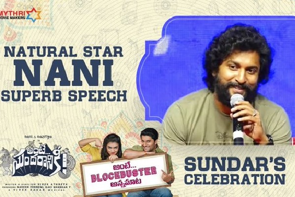 నాని - నజ్రియా జంటగా 'అంటే .. సుందరానికీ' రూపొందింది. వివేక్ ఆత్రేయ దర్శకత్వం వహించిన ఈ సినిమా, ఈ నెల 10వ తేదీన విడుదలైంది. ఈ సినిమా సెలబ్రేషన్స్ ను కొంత సేపటిక్రితం నిర్వహించారు.