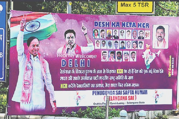 KCR: కేసీఆర్కు స్వాగతం పలుకుతూ ఢిల్లీలో భారీ హోర్డింగ్.. కాసేపటికే తొలగింపు