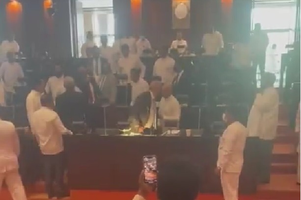 శ్రీలంక పార్లమెంటులో ఆ దేశ అధ్యక్షుడు గోటబాయ రాజపక్సకు చేదు అనుభవం ఎదురైంది. మంగళవారం పార్లమెంటుకు వచ్చిన ఆయనపై ఎంపీలు తీవ్రంగా మండిపడ్డారు. అధ్యక్ష పదవికి రాజీనామా చేయాలని డిమాండ్ చేస్తూ.. నిరసనకు దిగారు. నిలబడి ‘గోట గో హోమ్’ అని నినాదాలు చేశారు. వారు ఎంతకీ వెనక్కి తగ్గకపోవడంతో అధ్యక్షుడు గోటబాయ రాజపక్స, ఆయన అనుచరులు పార్లమెంటును వీడి బయటికి వెళ్లిపోయారు. ఆ దేశం ఎంపీ హర్ష డిసల్వా దీనంతటినీ వీడియో తీసి ట్విట్టర్ లో పోస్ట్ చేశారు.