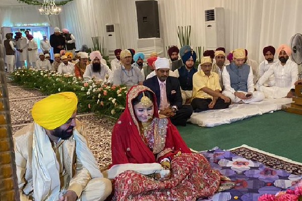 పంజాబ్ సీఎం భగవంత్ మాన్ రెండో పెళ్లి చేసుకున్నారు. హర్యానాకు చెందిన 32 ఏళ్ల గుర్ ప్రీత్ కౌర్ తో ఆయన వివాహం నేడు జరిగింది. ఈ పెళ్లికి చండీగఢ్ లోని భగవంత్ మాన్ నివాసం వేదికగా నిలిచింది. కొద్దిమంది కుటుంబ సభ్యులు, బంధుమిత్రుల సమక్షంలో వీరి వివాహం సిక్కు సంప్రదాయాల ప్రకారం జరిగింది.