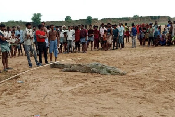 • కర్రలు, వల సాయంతో మొసలిని నది బయటకు లాగిన గ్రామస్థులు