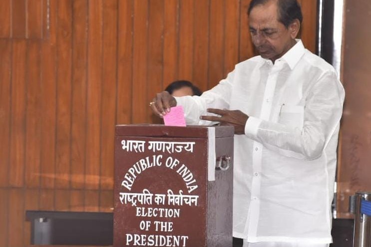 కాగా, తెలంగాణ సీఎం కేసీఆర్ కూడా రాష్ట్రపతి ఎన్నికల్లో తన ఓటు హక్కు వినియోగించుకున్నారు. తెలంగాణ అసెంబ్లీ కమిటీ హాల్ లో ఏర్పాటు చేసిన పోలింగ్ కేంద్రానికి ఆయన స్పీకర్ పోచారం శ్రీనివాసరెడ్డితో కలిసి వెళ్లారు. తొలుత శ్రీనివాసరెడ్డి ఓటు హక్కు వినియోగించుకోగా, అనంతరం కేసీఆర్ తన ఓటు వేశారు. అనంతరం పలువురు టీఆర్ఎస్ ఎమ్మెల్యేలు ఓటు హక్కు వినియోగించుకున్నారు.