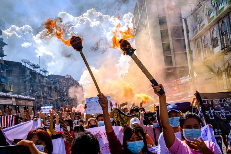ప్రజాస్వామ్య అనుకూల నిరసనలను అక్కడి సైనిక సర్కారు అణచివేసే కార్యక్రమాన్ని కొనసాగిస్తోంది. దీంతో అక్కడ హింసాత్మక చర్యలు పెరిగిపోయాయి.