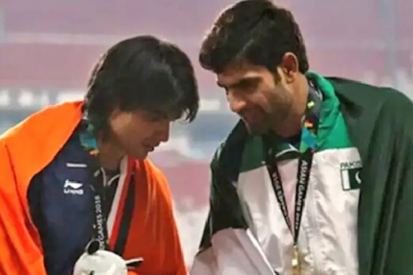 Neeraj Chopra congratulates Pakistan Javelin thrower Arshad Nadeem