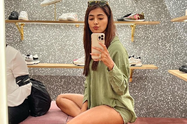 లండ‌న్‌లోని ఓ ఫుట్‌వేర్ షాప్‌లో నింపాదిగా కూర్చున్న పూజ ఓ సెల్ఫీ తీసుకుంది. ఆ సెల్ఫీకి సంబంధించిన ఫొటోనే ఆమె సోష‌ల్ మీడియాలో పోస్ట్ చేసింది. ఈ ఫొటోను చూసిన నెటిజ‌న్స్ పూజపై ప‌లు ర‌కాల కామెంట్లు పోస్ట్ చేస్తున్నారు. ఫ‌లితంగా సోష‌ల్ మీడియాలో చేరిన నిమిషాల వ్యవ‌ధిలోనే ఈ పోస్ట్ వైర‌ల్‌గా మారిపోయింది.
