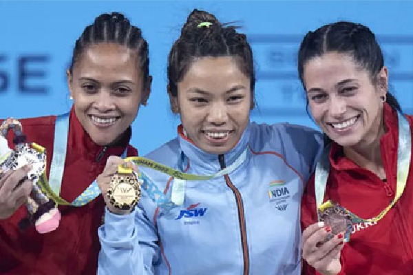 కామన్వెల్త్ గేమ్స్లో తొలి రోజు నుంచే అదరగొడుతున్న భారత అథ్లెట్లు నిన్న పతకాల వేట ప్రారంభించారు. పురుషుల విభాగంలో ఒక రజతం, ఒక కాంస్యం రాగా, మణిపూర్ వెయిట్లిఫ్టింగ్ క్వీన్ మీరాబాయి చాను ఏకంగా పసిడి పతకాన్ని అందించింది. 49 కేజీల విభాగంలో డిఫెండింగ్ క్వీన్గా బరిలోకి దిగిన మీరాబాయి కామన్వెల్త్ టైటిల్ను నిలబెట్టుకుంది. 49 కేజీల విభాగంలో రికార్డు స్థాయిలో 201 కేజీలు ఎత్తి స్వర్ణ పతకం సాధించింది. స్నాచ్ విభాగంలో తొలి ప్రయత్నంలో 84 కేజీలు ఎత్తిన చాను.. రెండో ప్రయత్నంలో 88 కేజీలు, క్లీన్ అండ్ జర్క్లో 113 కేజీలు మొత్తం 201 కేజీలతో చాంపియన్గా అవతరించింది. ఫలితంగా వ్యక్తిగత జాతీయ రికార్డును సమం చేసింది. గతేడాది జరిగిన టోక్యో ఒలింపిక్స్లో చాను రజత పతకం గెలుచుకుంది.