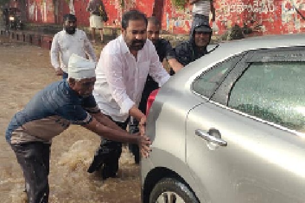 Kotamreddy Sridhar Reddy: నెల్లూరులో భారీ వర్షం... నీటిలో ఆగిపోయిన వాహనాలను ముందుకు నెట్టిన ఎమ్మెల్యే కోటంరెడ్డి