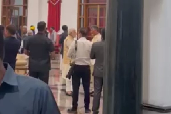 కేంద్రం ఆహ్వానాన్ని మన్నించిన చంద్రబాబు శనివారం ఉదయం ఢిల్లీ వెళ్లారు. రాష్ట్రపతి భవన్లో సాయంత్రం జరిగిన ఈ భేటీలో చాలా కాలం తర్వాత మోదీ, చంద్రబాబులు ఒకే వేదికపై కనిపించారు. భేటీ ముగిశాక అందరూ వెళుతున్న సమయంలో చంద్రబాబుతో మోదీ ఏకాంతంగా భేటీ అయ్యారు.