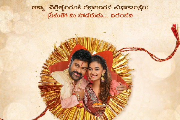 - రాఖీ పౌర్ణమి శుభాకాంక్షలు తెలిపిన మెగాస్టార్