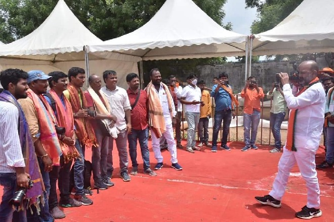 Telangana: ఫొటోగ్రాఫర్లను వరుసగా నిలబెట్టి ఫొటో తీసిన బండి సంజయ్... ఫొటోలు ఇవిగో