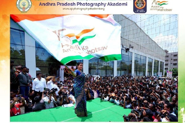 ఈ ఎగ్జిబిషన్లో ఏపీకి చెందిన ఓ ఫొటో కూడా ప్రదర్శితమైంది. అది ఓ ప్రొఫెషనల్ ఫొటోగ్రాఫరే తీసినా... అందులో ఆజాదీ కా అమృత్ మహోత్సవ్ పతాకాన్ని పట్టుకున్న ఏపీ పర్యాటక శాఖ మంత్రి ఆర్కే రోజా ఉన్నారు. వేదిక చుట్టూ వందలాది మంది ఫొటోగ్రాఫర్లు కెమెరాలతో క్లిక్ మనిపిస్తుండగా.. వేదికపై ఆమె ఒక్కరే ఆ జెండాను రెపరెపలాడిస్తూ కనిపిస్తున్నారు. ఈ ఫొటో ముంబై ఫొటో ఎగ్జిబిషన్కు ఎంపికైనందుకు తనకు ఎంతో సంతోషంగా ఉందంటూ రోజా ఆనందం వ్యక్తం చేశారు.