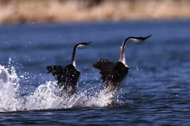 - అమెరికాలో నివసించే వెస్టర్న్ గ్రేబ్స్, క్లార్క్ గ్రేబ్స్ పక్షులు