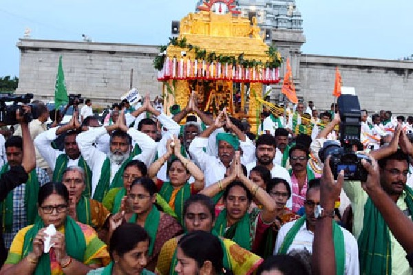 ఆంధ్రప్రదేశ్ ఏకైక రాజధానిగా అమరావతినే కొనసాగించాలంటూ జరగుతున్న ఉద్యమానికి నేటితో 1000 రోజులు. ఈ సందర్భంగా చేపట్టనున్న మహాపాదయాత్ర 2.0కు ఈ ఉదయం అంకురార్పణ జరిగింది. ఈ తెల్లవారుజామున వెంకటపాలెంలోని టీటీడీ ఆలయంలో ప్రత్యేక పూజలు నిర్వహించిన రైతులు అనంతరం ఆలయం బయట ఉన్న వేంకటేశ్వరస్వామి వారి రథాన్ని నడిపి పాదయాత్రకు అంకురార్పణ చేశారు. అనంతరం రథాన్ని గ్రామంలోకి తీసుకెళ్లారు.