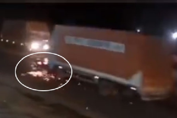 - నిప్పు రవ్వలు ఎగసిపడుతున్నా పట్టించుకోని లారీ డ్రైవర్