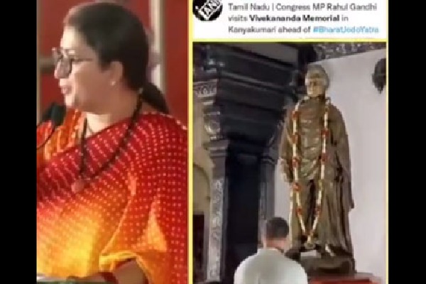 - ఆమె వ్యాఖ్యల వీడియోకు వివేకానందుడికి రాహుల్ నివాళులు అర్పిస్తున్న వీడియోను జత చేసిన కాంగ్రెస్
