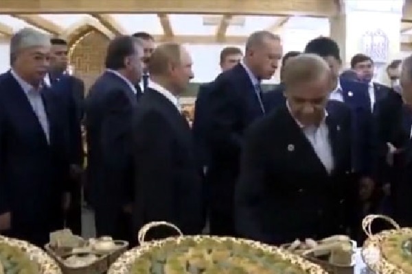 పరిస్థితులు ఇలా ఉంటే ఉజ్బెకిస్థాన్లో ల్యాండైన నేతలు జిహ్వచాపల్యాన్ని చంపుకోలేకపోయారు. అతిథుల కోసం సిద్ధం చేసిన ఆహార పదార్థాలను చూసి మనసును నిలువరించుకోలేకపోయారు. దేశాధి నేతలైనా రుచులకు దాసోహం కాకతప్పదని నిరూపించారు. సిద్ధం చేసిన ఆహార పదార్థాల వద్దకు వెళ్లి వాటి రుచి చూసి ‘ఓహో’ అంటూ లొట్టలు వేశారు. పాక్ ప్రధాని షాబాజ్ షరీఫ్, రష్యా అధ్యక్షుడు పుతిన్, టర్కీ అధ్యక్షుడు రెసెప్ తయ్యిప్ ఎర్డోగన్ తదితరులు ఆహార పదార్థాల వద్దకు వెళ్లి రుచులు ఆస్వాదించారు. ఇందుకు సంబంధించిన వీడియో వైరల్ అవుతోంది.