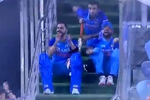 చివరి ఓవర్లో సిక్స్ కొట్టి, ఆ తర్వాత బంతికే అవుటైన కోహ్లీ... డ్రెస్సింగ్ రూంలోకి వెళ్లకుండా మెట్లపైనే కూర్చున్నాడు. కోహ్లీ పక్కనే కెప్టెన్ రోహిత్ శర్మ కూడా కూర్చుని మ్యాచ్ ను ఉత్కంఠతో వీక్షించారు.